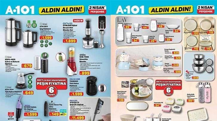 A101 mağazalarında bu hafta mağaza raflarında satışa sunulacak ürünlerin tam ve eksiksiz listesi belli oldu. A101 Aldın Aldın 2 Nisan Perşembe aktüel kataloğunda bu hafta TV çeşitleri, Bulaşık Makinesi, Büro Tipi Buzdolabı, Çay Makinesi, Kahve ve Baharat Öğütücü, Smoothie Blender, Rendeli Metal Kase Set ve daha birçok ürün yer alıyor.