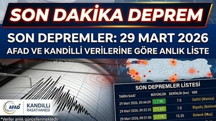 29 MART 2025 SON DAKİKA DEPREM Mİ OLDU?AFAD tarafından paylaşılan son bilgilere göre; 29 Mart 2026 bugün saat 09:27'de Muş'un Bulanık ilçesinde 2.8 büyüklüğünde deprem meydana geldi. Sarsıntı yerin 7.0 km derinliğinde kaydedildi.